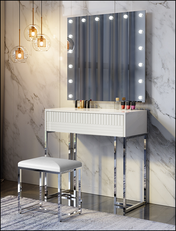 שידת איפור לבן מבריק דגם ספרד כולל כיסא